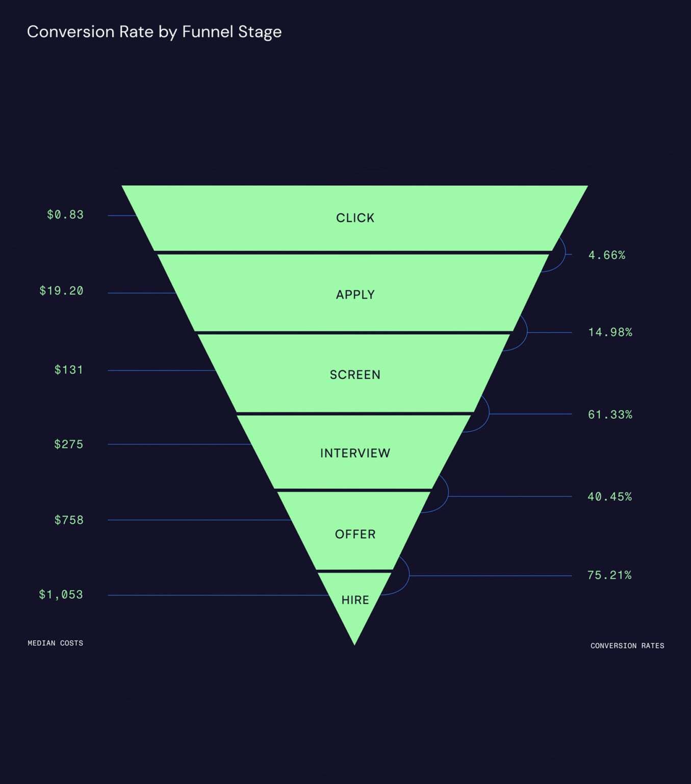 This year, we’re raising the bar with two big updates. We’ve added international benchmarks from select markets outside the United States so global and expanding teams can see how performance shifts by country or region. And we’ve brought in disposition data that goes further down-funnel to show how candidates move through screening, interview, and offer stages, and how those conversion patterns connect to overall hiring cost.