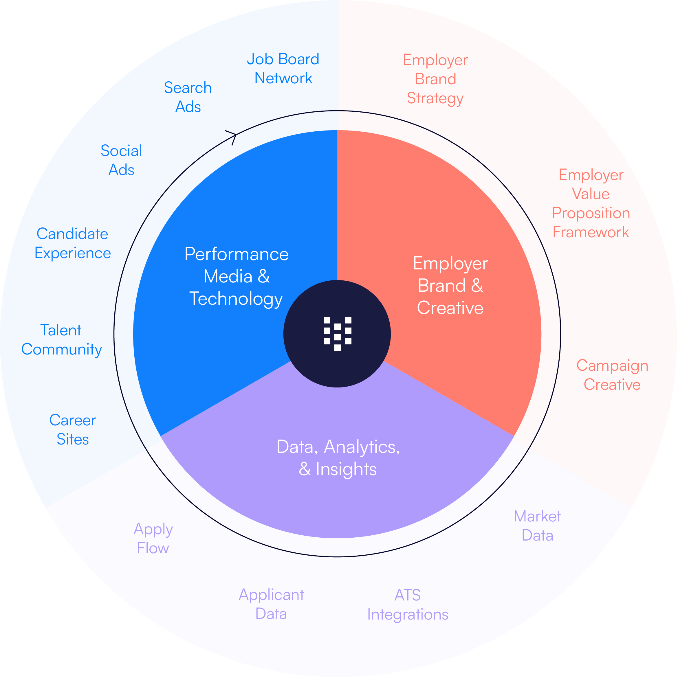 We combine performance driven media, conversion optimized career sites, and a full suite of employer brand and creative services.