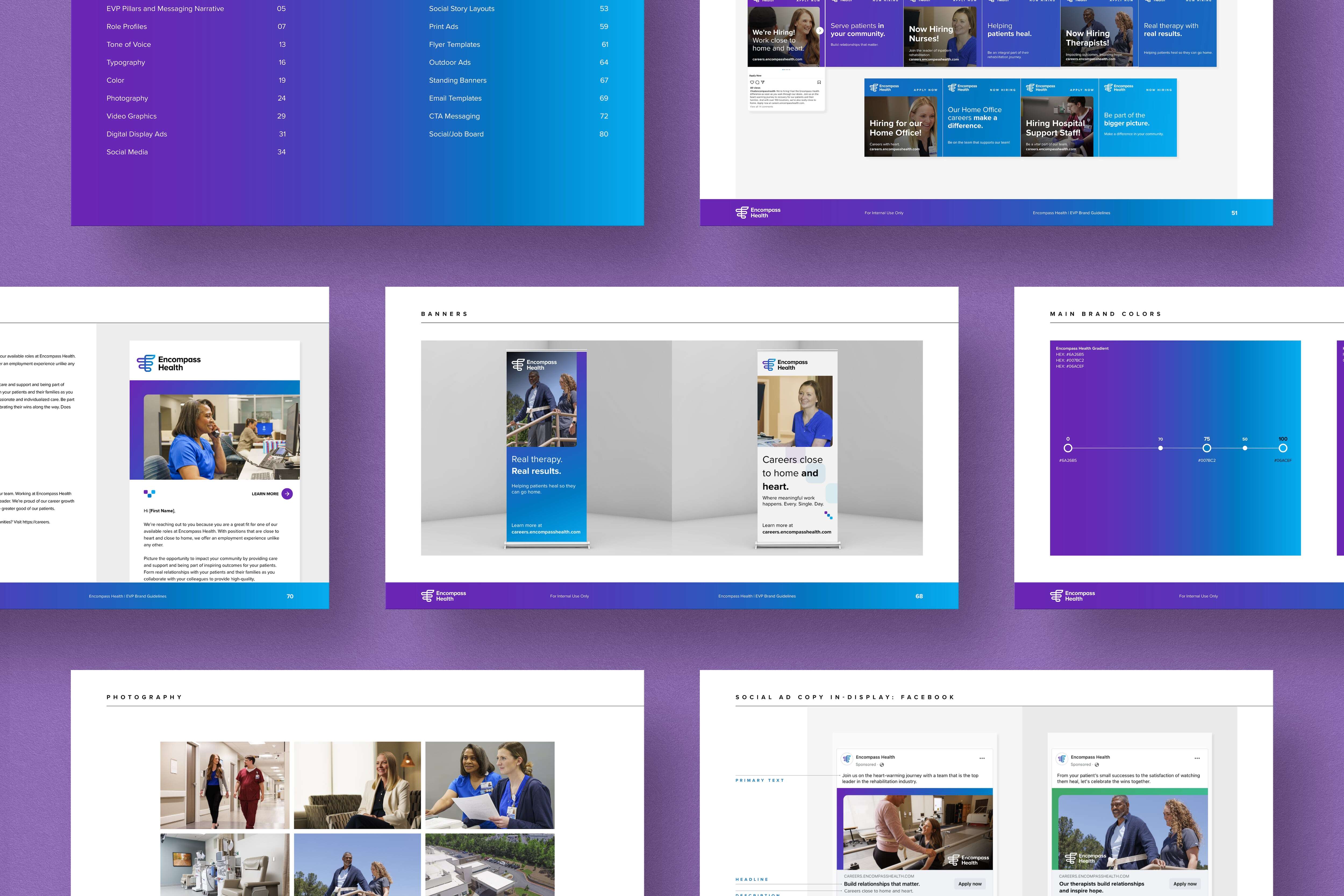 • Creating cohesive assets that showcase what makes Encompass Health a special place to work and that stand out from their competitors in designs and messaging.