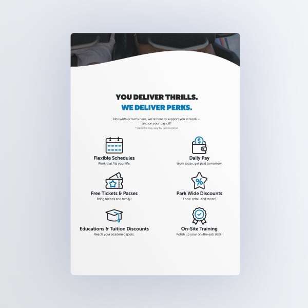 Our goal was to successfully build unique and cohesive creative that speaks to the Six Flags brand, while achieving national hiring goals across 22 park locations.