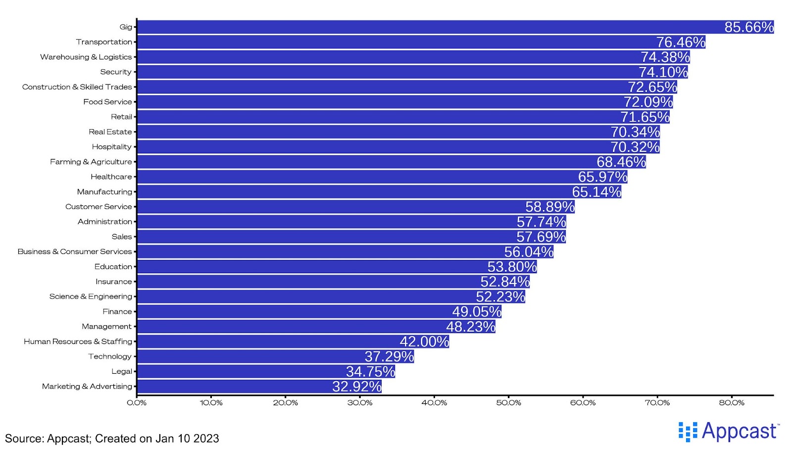 In a world that is increasingly lived through our phones, more and more candidates are scrolling for their next opportunity, rather than sitting down with a laptop. This is especially true for workers in the service economy, as opposed to those looking for a traditional “desk job,” as we’ve highlighted in our Benchmark report. If they’re searching on their mobile device, why not meet them where they’re at?