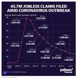 In April, the unemployment rate hit 14.7% (it declined slightly in May, to 13.3%). April saw the highest unemployment rate since the government started keeping records in 1939.