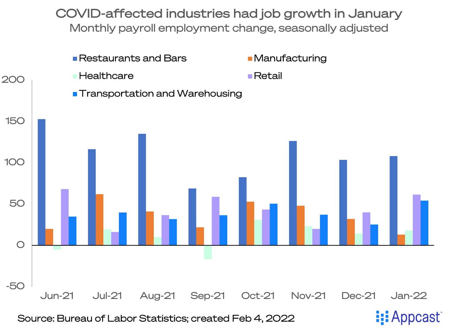 I was quoted last month as calling the seasonal adjustments “wacky” in 2021, as the pandemic has distorted typical hiring patterns. That’s true, and it still might be the case. Why? These seasonally-adjusted, revised numbers show accelerating payroll gains in retail and transportation and warehousing – the very industries that are most affected by the holiday shopping season. Perhaps employers held onto those workers who they would normally let go after the holiday season ended; that is just an informed guess.