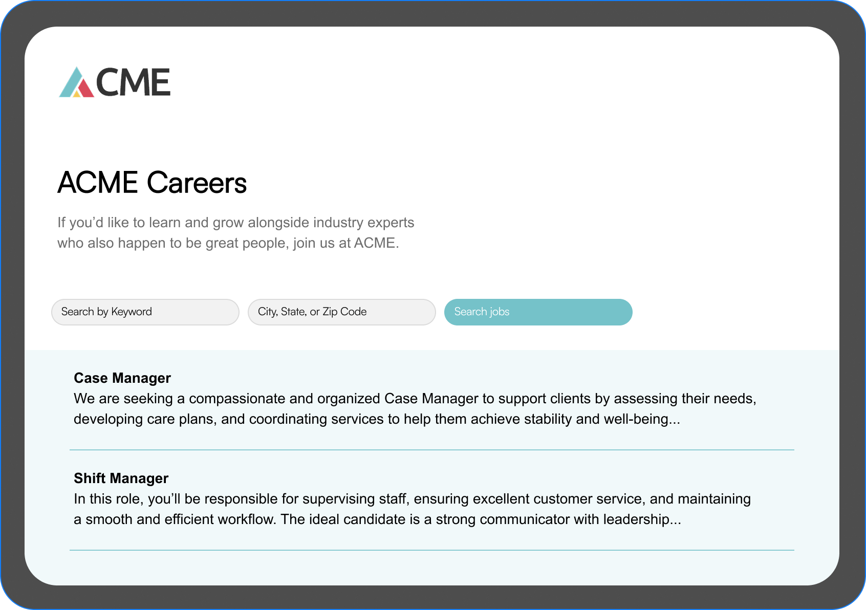 CANDIDATE LANDS ON YOUR BRANDED PAGE WITH A LIST OF RELEVANT JOBS