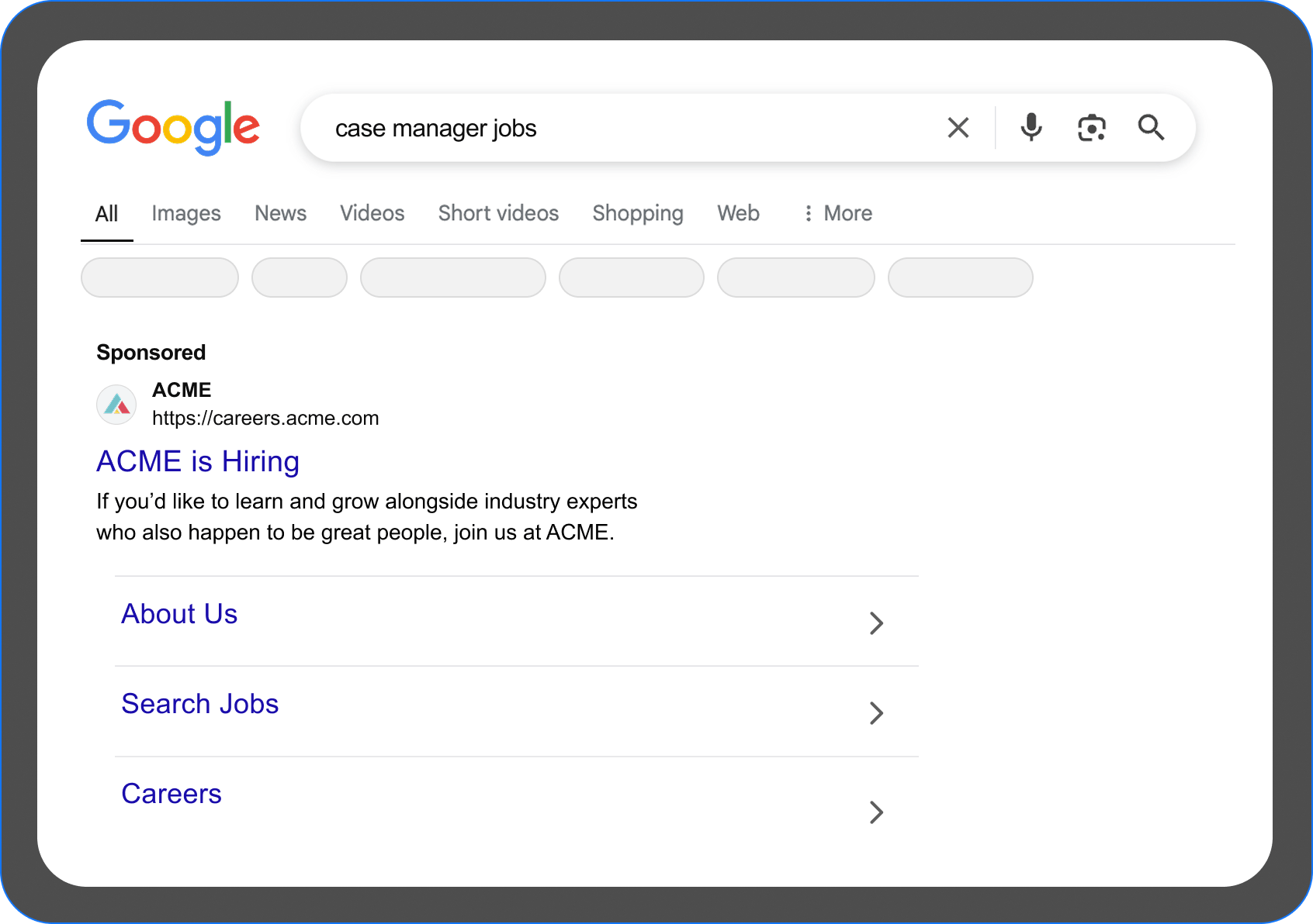 Dynamic hiring needs require dynamic solutions, and sometimes your go-to job advertising channels don’t quite get you the talent you need. Appcast Search Ads can top up your applicant pipeline for those high-priority roles where you need to go the extra mile to fulfill your hiring needs.